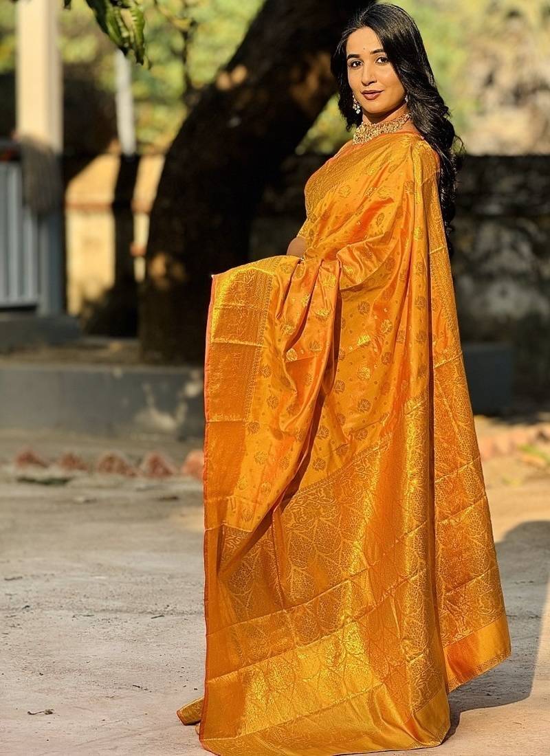 | Product Name | Orange Color Zari Woven Banarasi Art Silk Saree | |