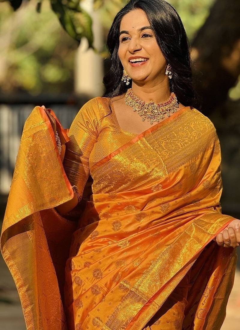 | • | Saree | : | Color- Orange / Fabric- Banarasi |