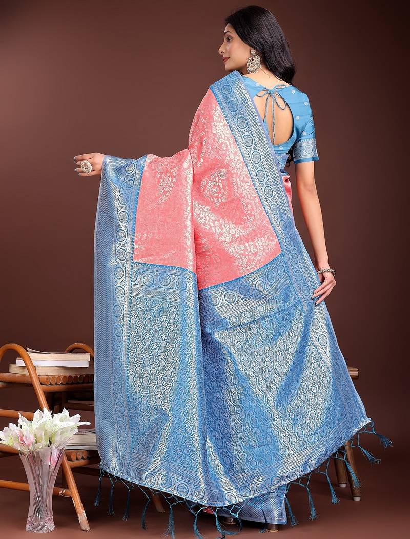 | Product Name | Peach Color Lichi Art Silk Blend Zari Weaving Saree With Blouse | |