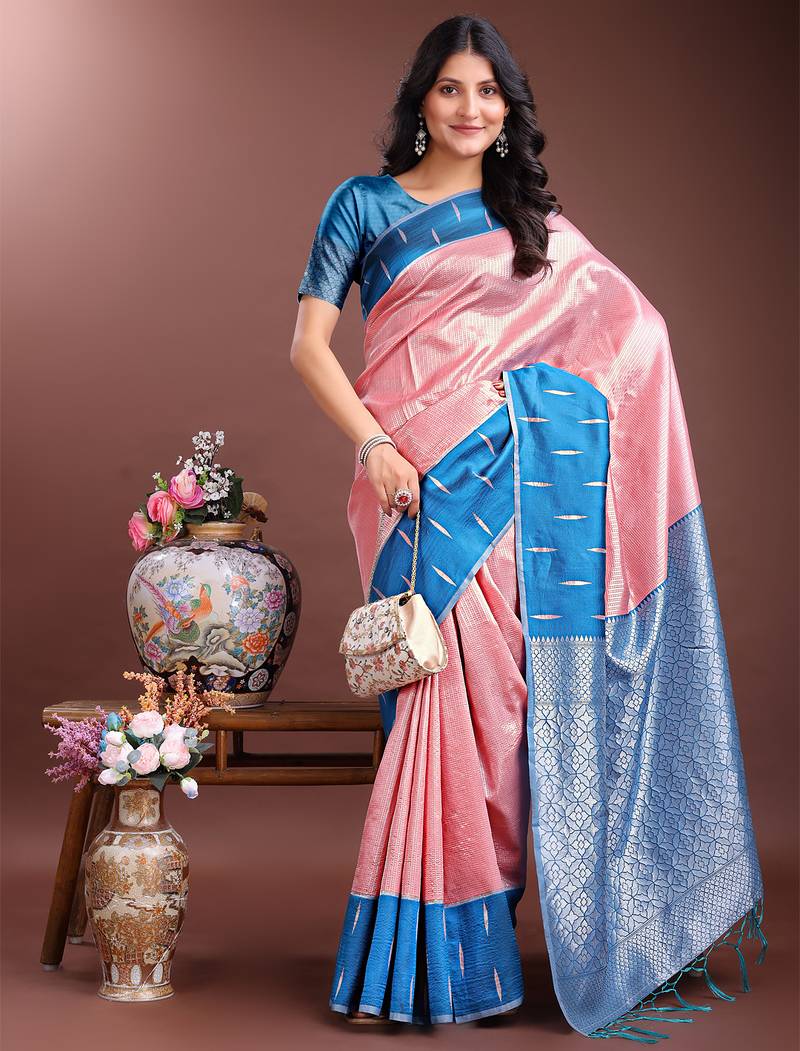 | Product Name | Peach Color Lichi Art Silk Blend Zari Weaving Saree With Blouse | |
