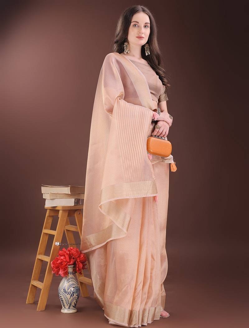 | Product Name | Peach Color Orgenza Zari Border Saree With Blouse | |