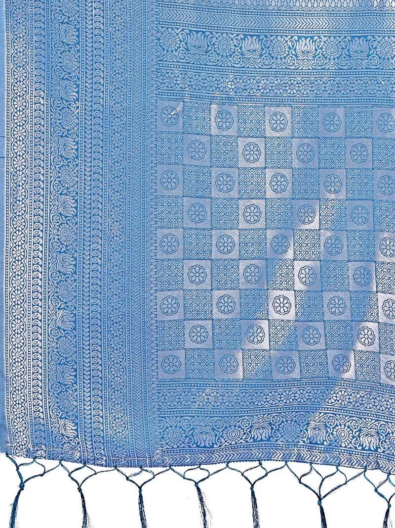 sky blue color woven lichi art silk blend saree
