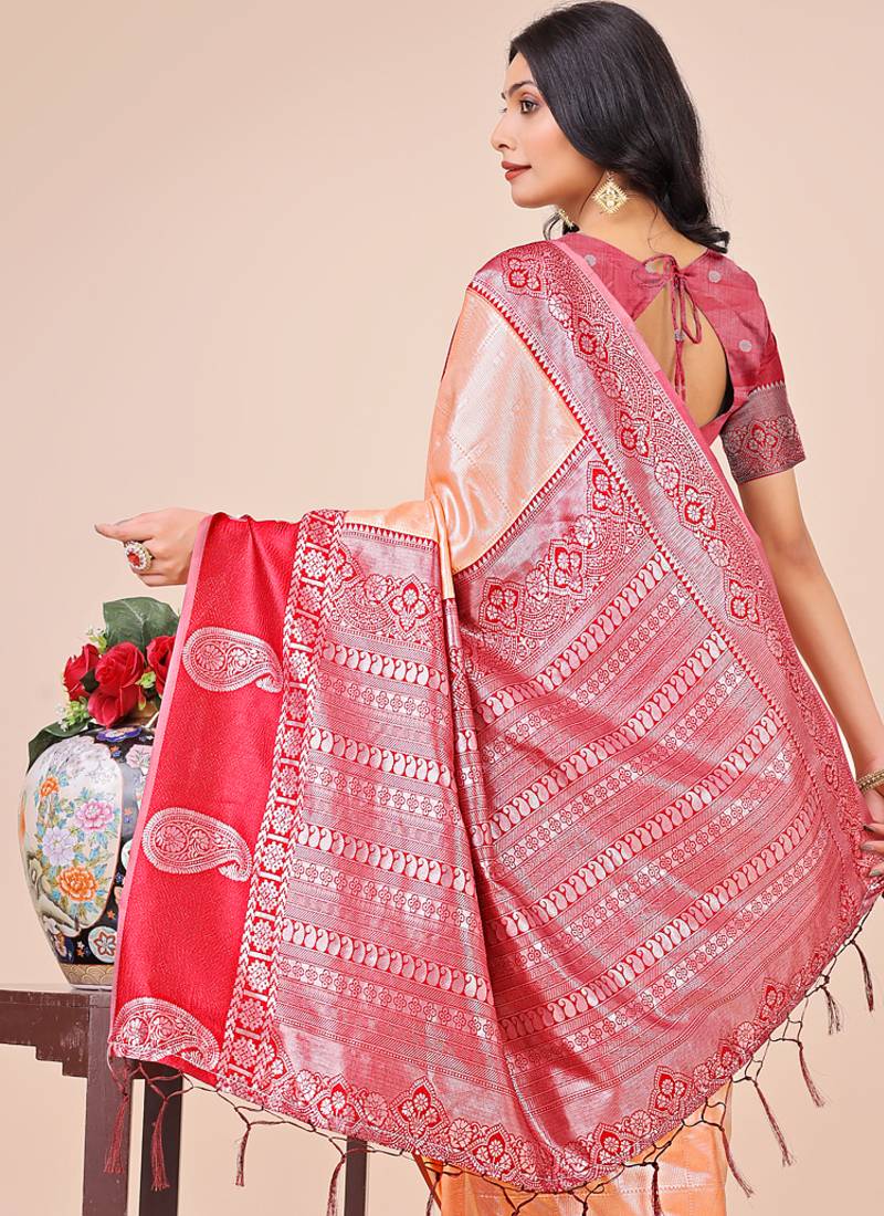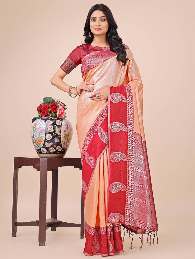 | Product Name | Peach Color Woven Lichi Art Silk Blend Saree With Blouse | |