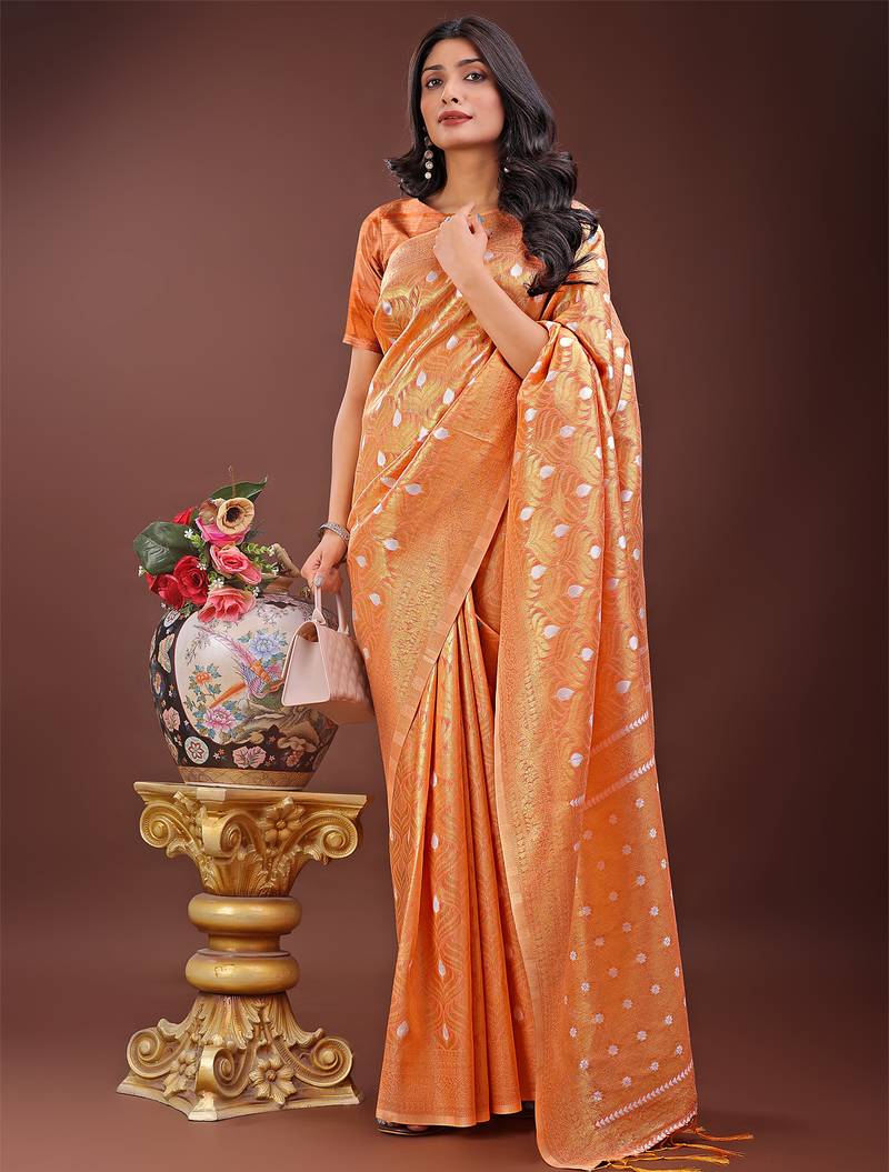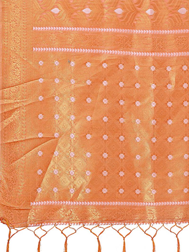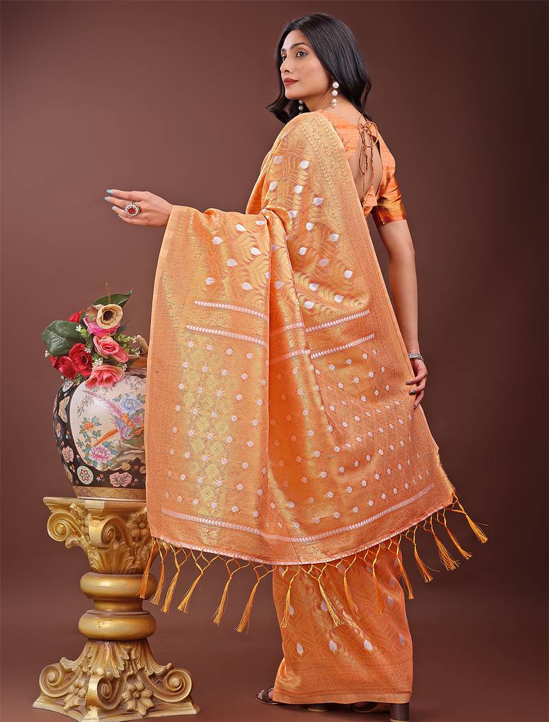 | Product Name | Orange Color Woven Work Cotton Saree With Blouse | |