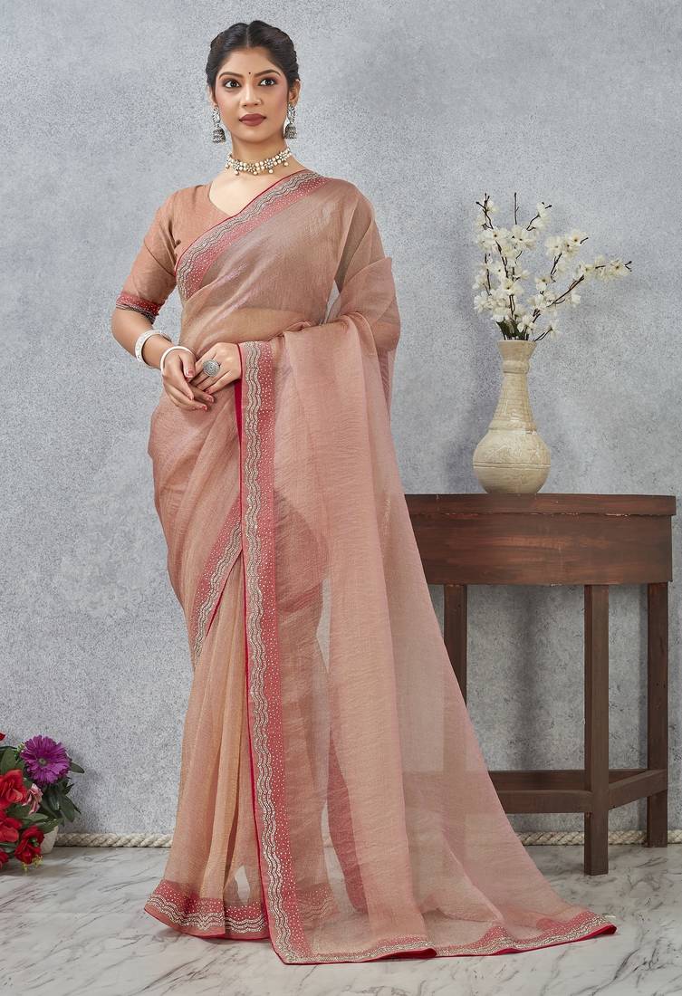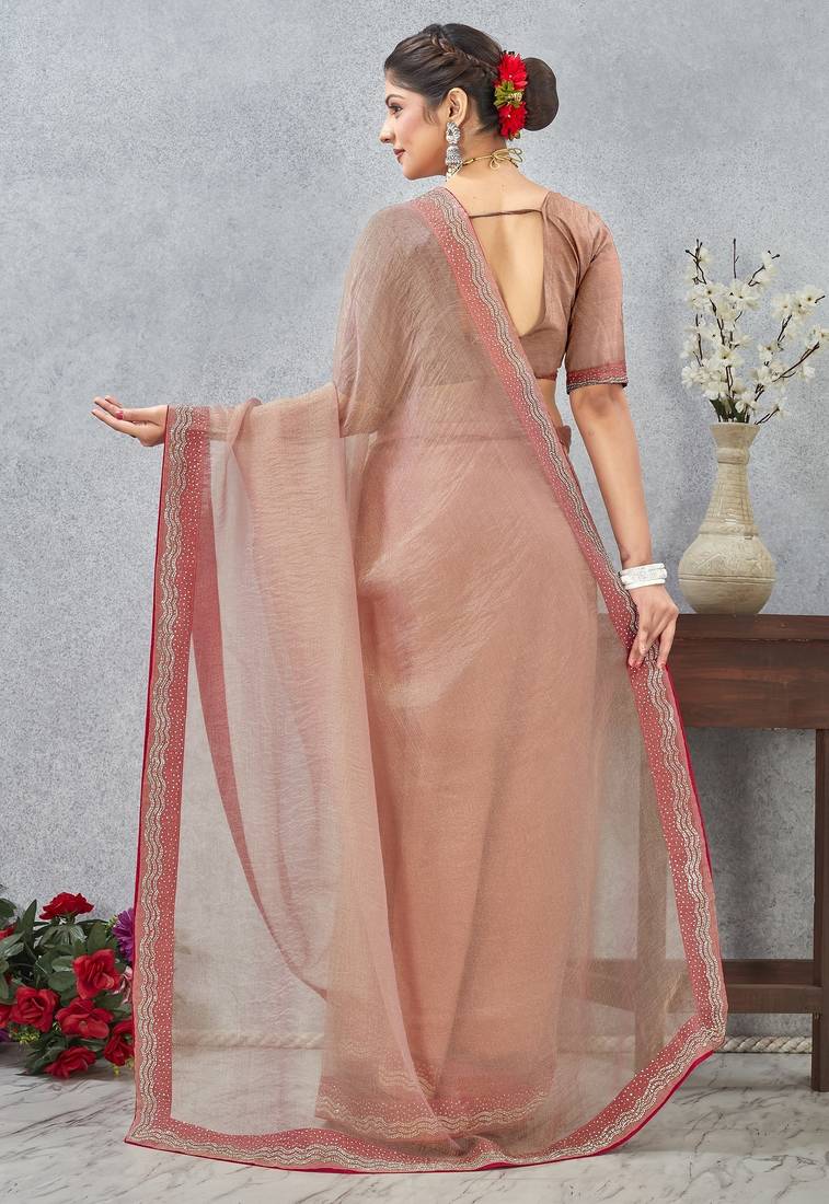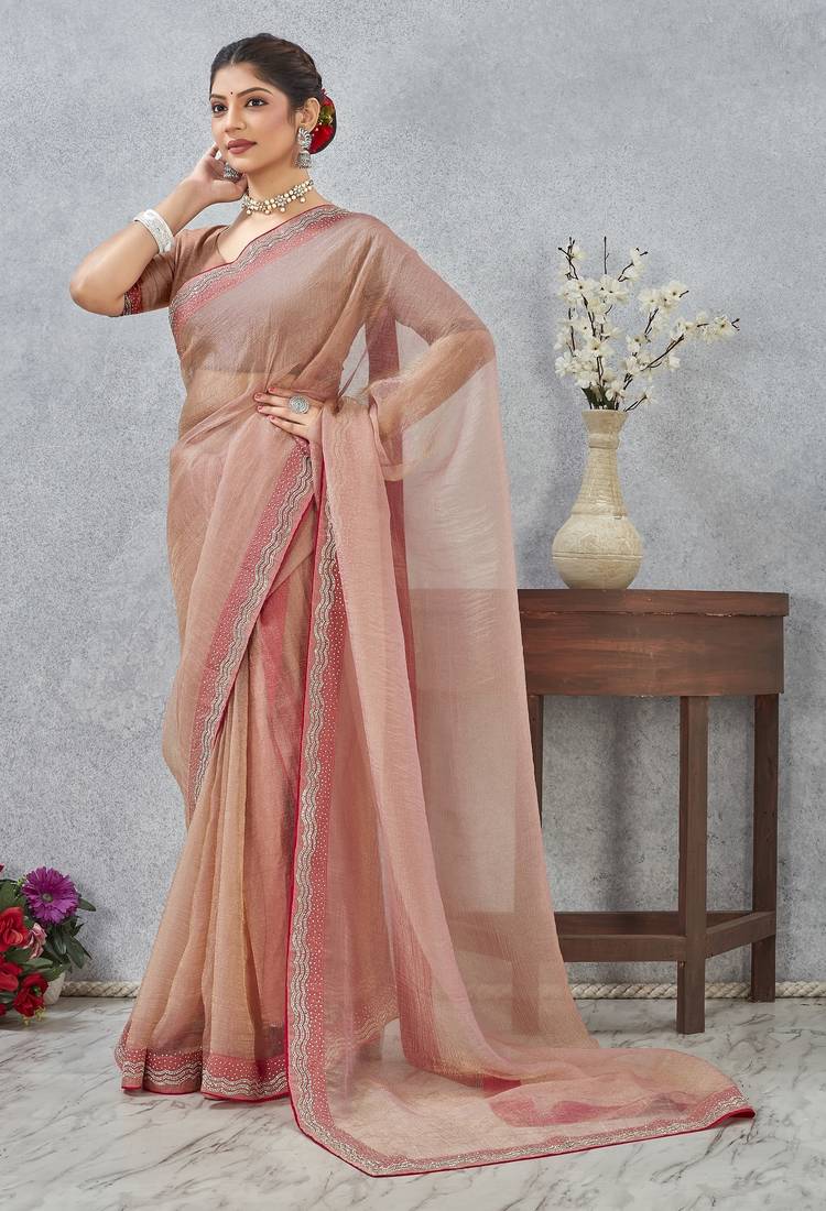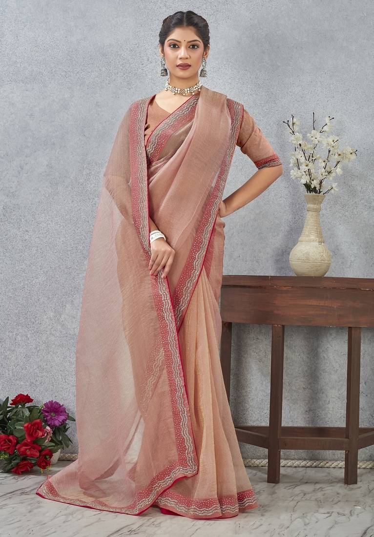 Product Name | Peach Color Zirkon Work Border Soft Silk Blend Saree With Blouse | |