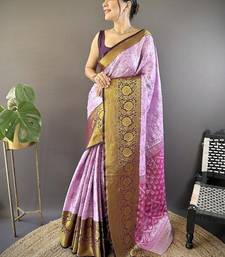 Pink & brown color woven zari work kanjivaram tissue art silk saree