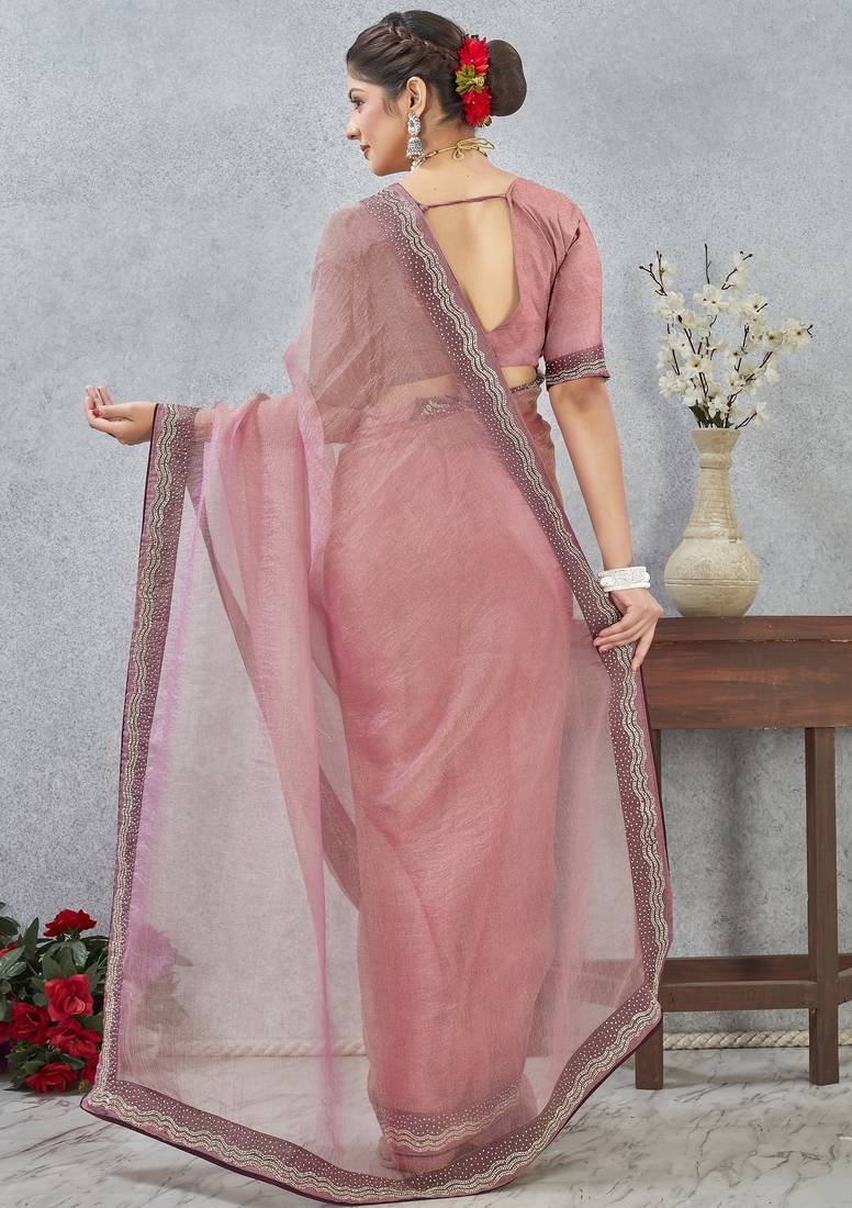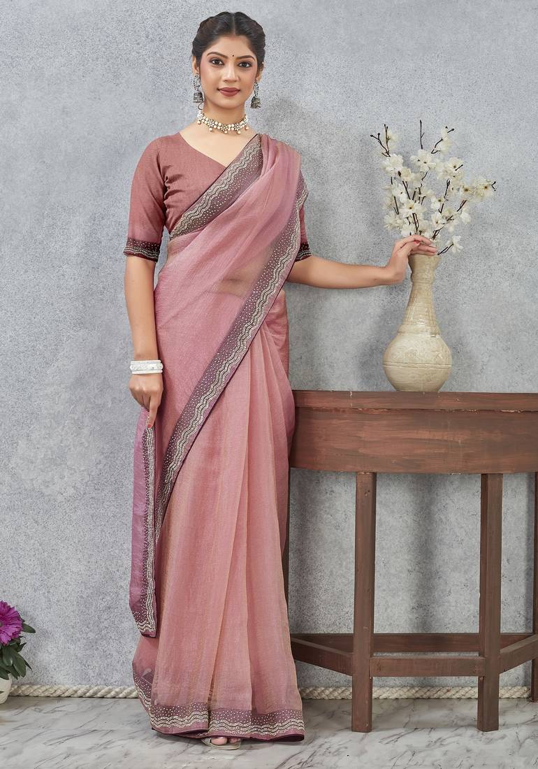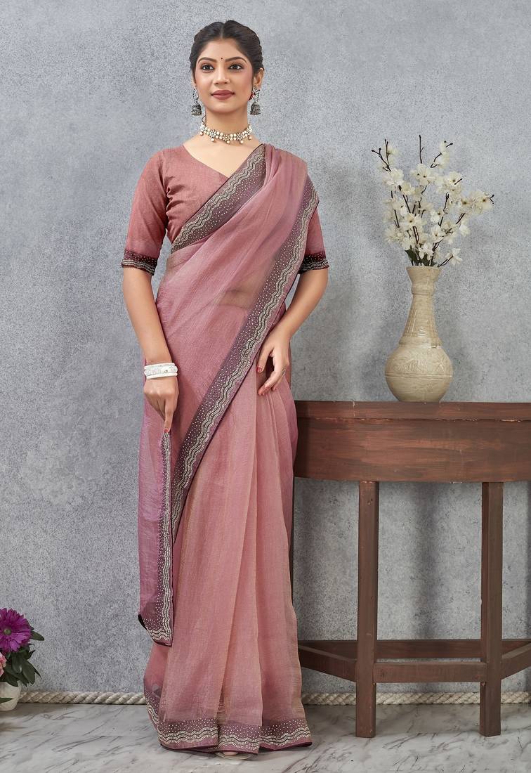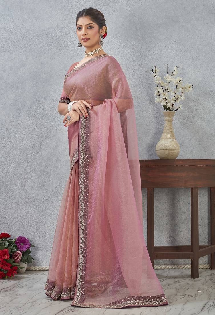 Product Name | Pink Color Zirkon Work Border Soft Silk Blend Saree With Blouse | |