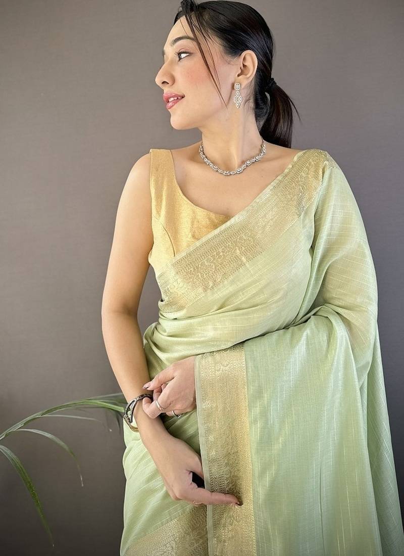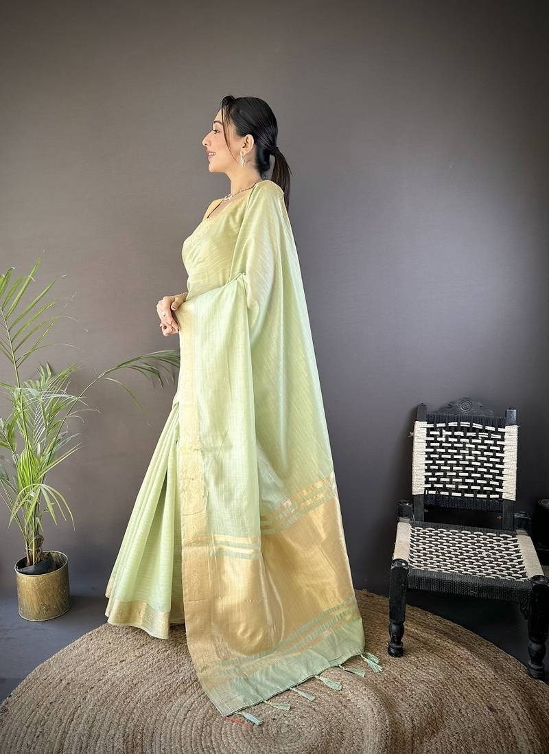 | Product Name | Pista Color Cotton Checks Zari Border Work Saree | |