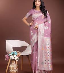 Purple color linen cotton zari weaving saree with blouse
