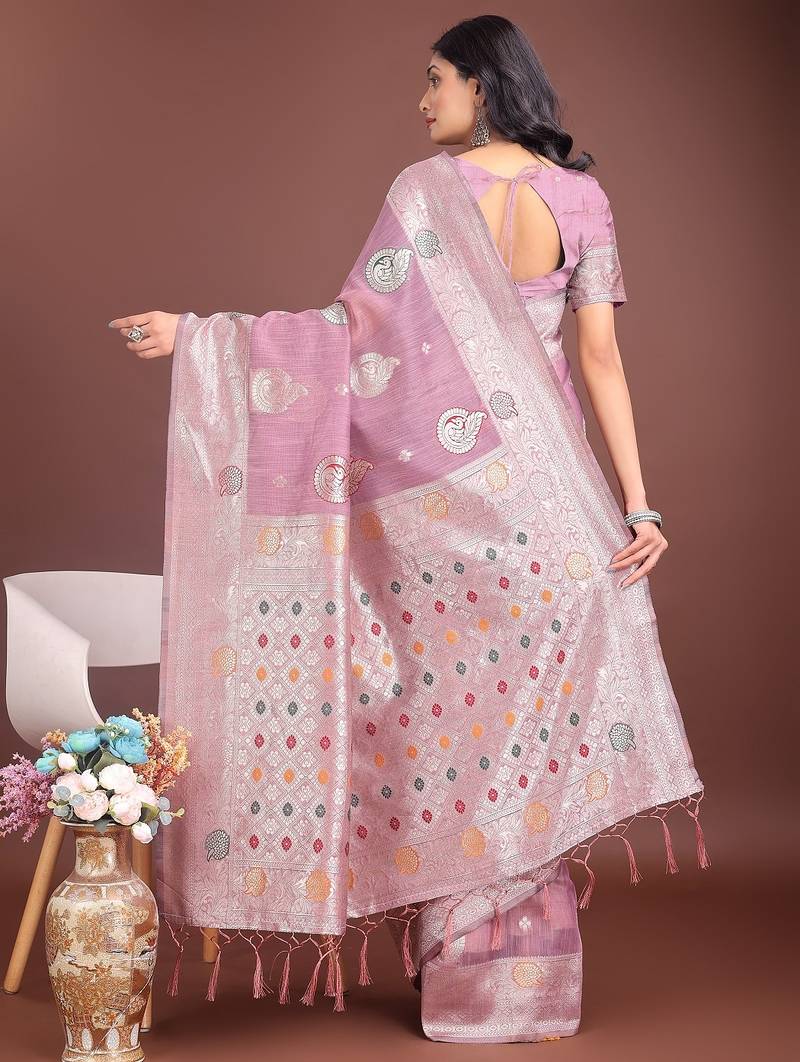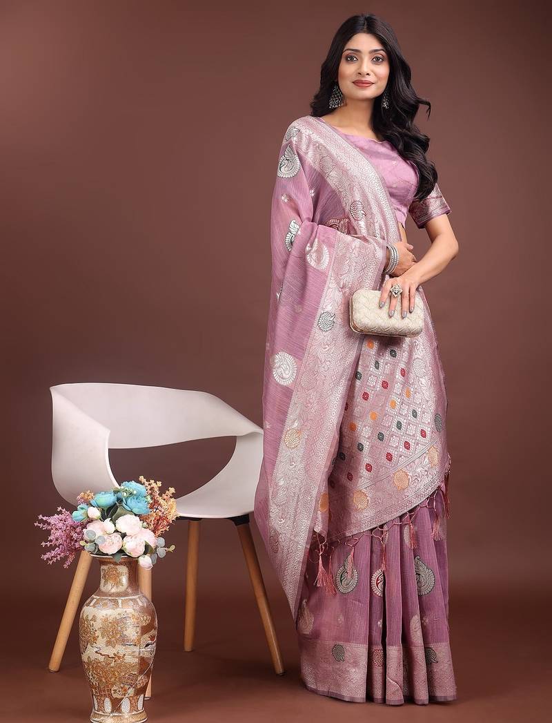 | Product Name | Purple Color Linen Cotton Zari Weaving Saree With Blouse | |