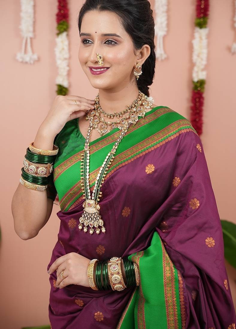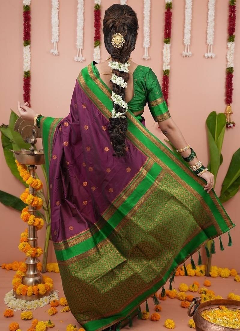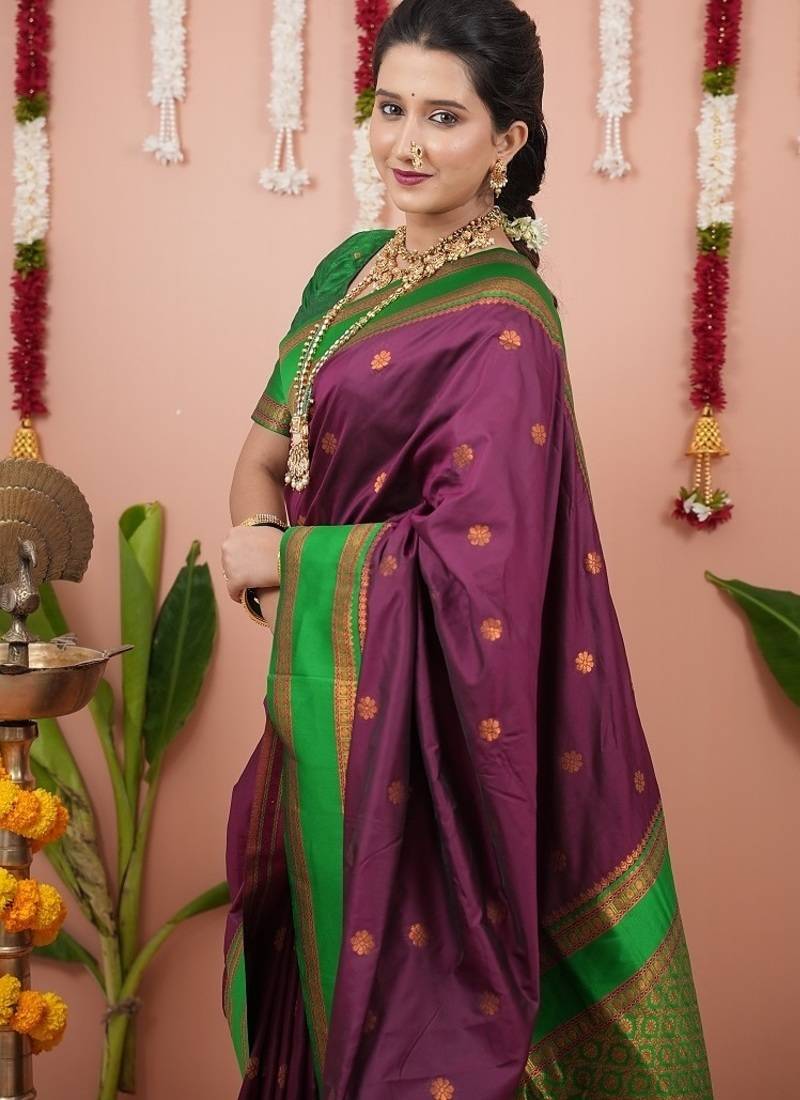 Purple color narayani woven border zari work soft silk blend saree