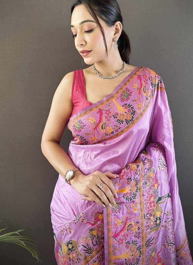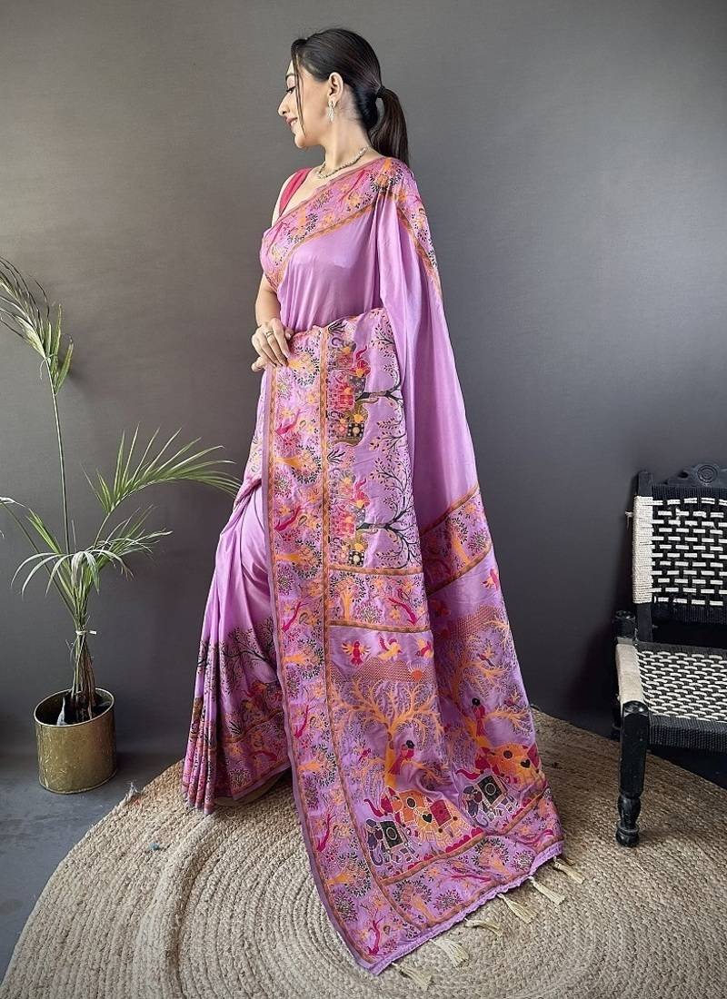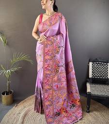 Purple color pashmina kashmiri meenakari zari weaving work saree