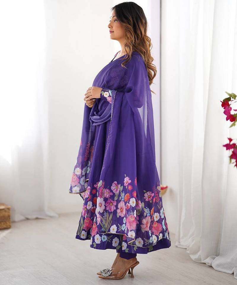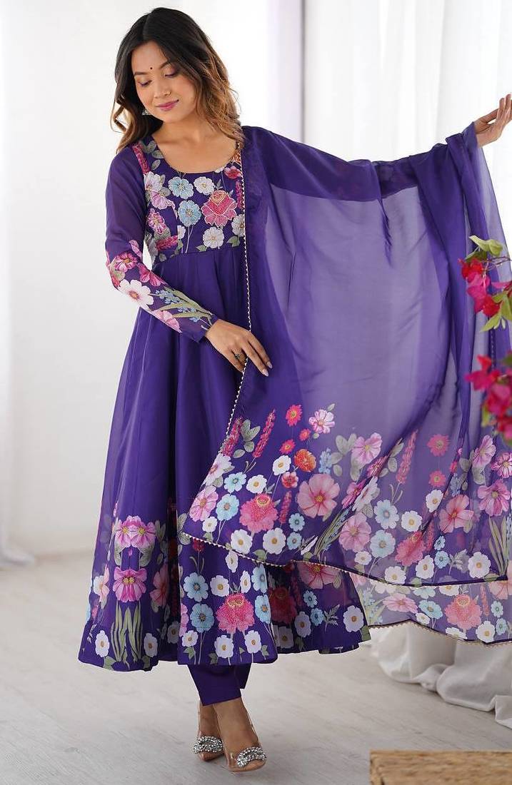 | Product Name | Purple Color Printed & Handwork Orgenza Silk Stitched Anarkali Set | |