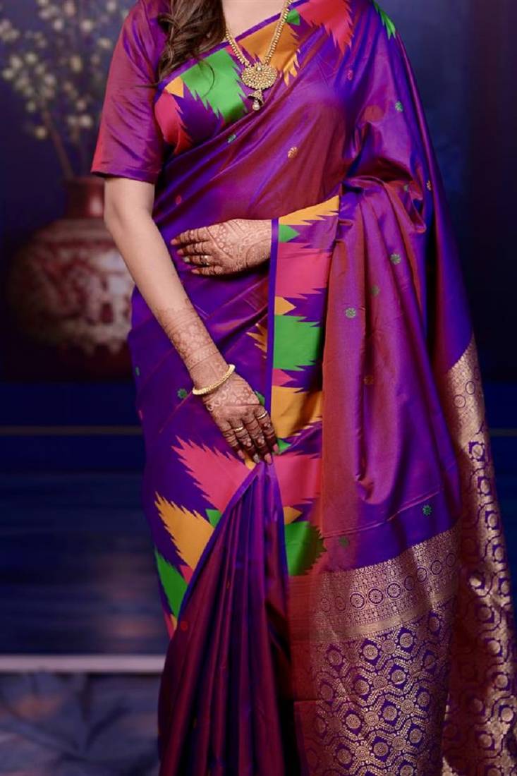 | Product Name | Purple Color Temple Woven Work Soft Art Silk Saree | |