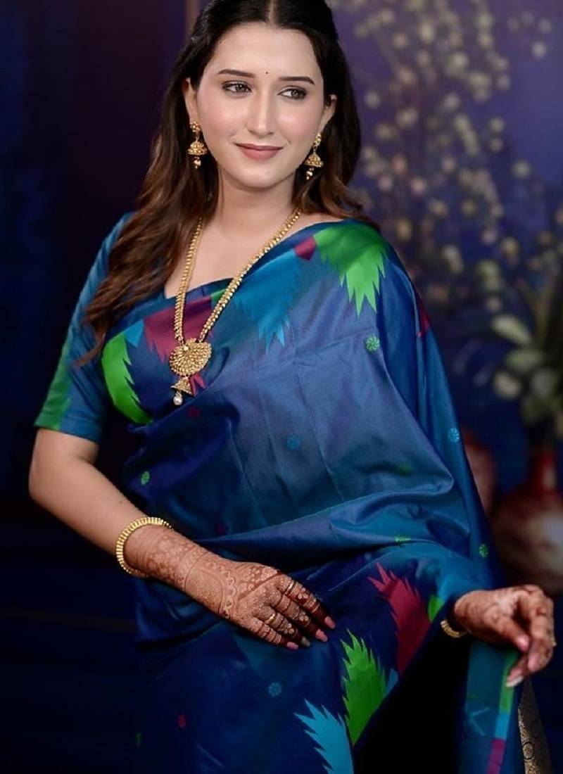 | Product Name | Rama Blue Color Temple Woven Work Soft Art Silk Saree | |