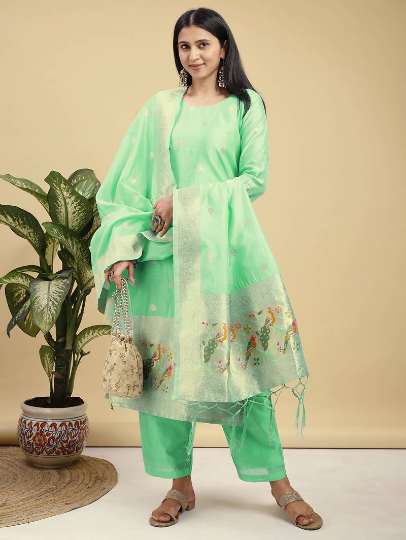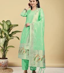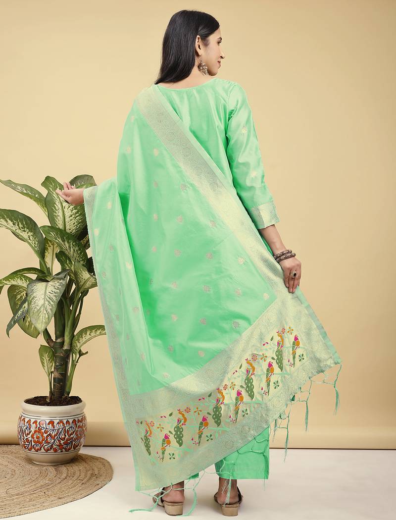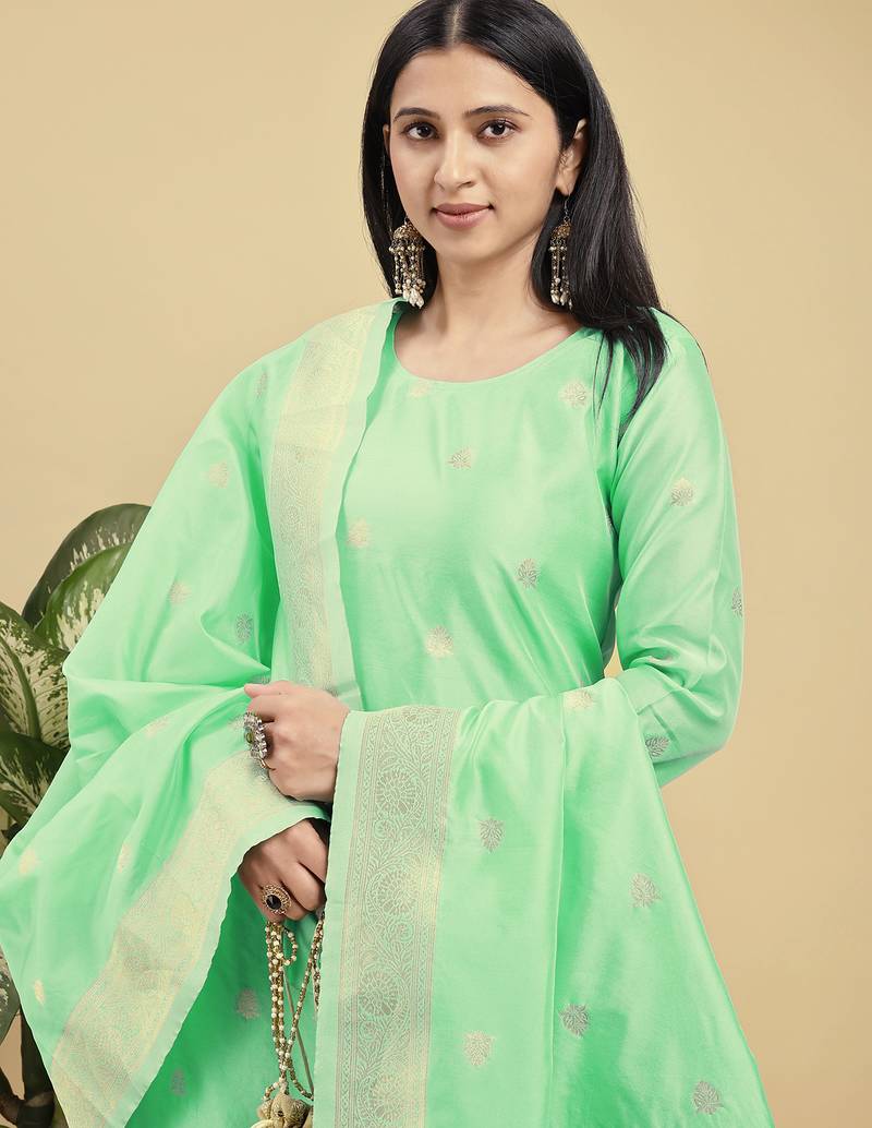 | Product Name | Readymade Light Green Color Pure Banarasi Silk Top Pent Dupatta Set | |
