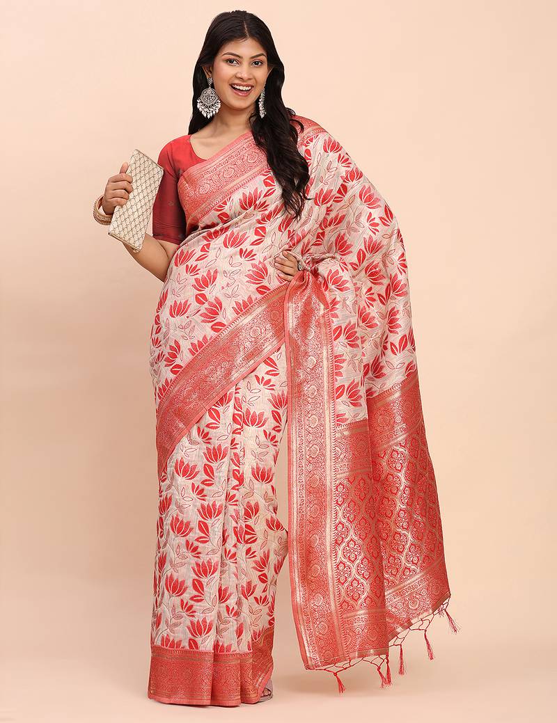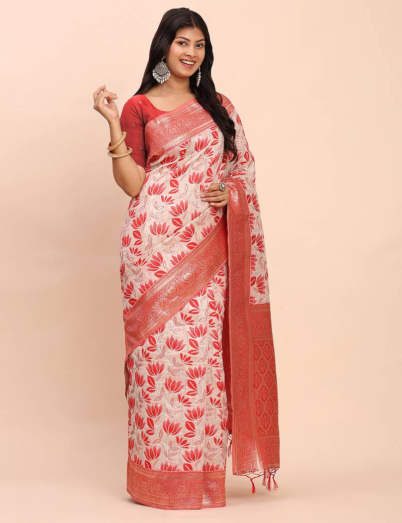 | Product Description | Linen Cotton Woven Zari Work Beautiful Women's Exclusive Casual Formal Official Party Wear Traditional South Indian Base Saree With Un Stitched Blouse |