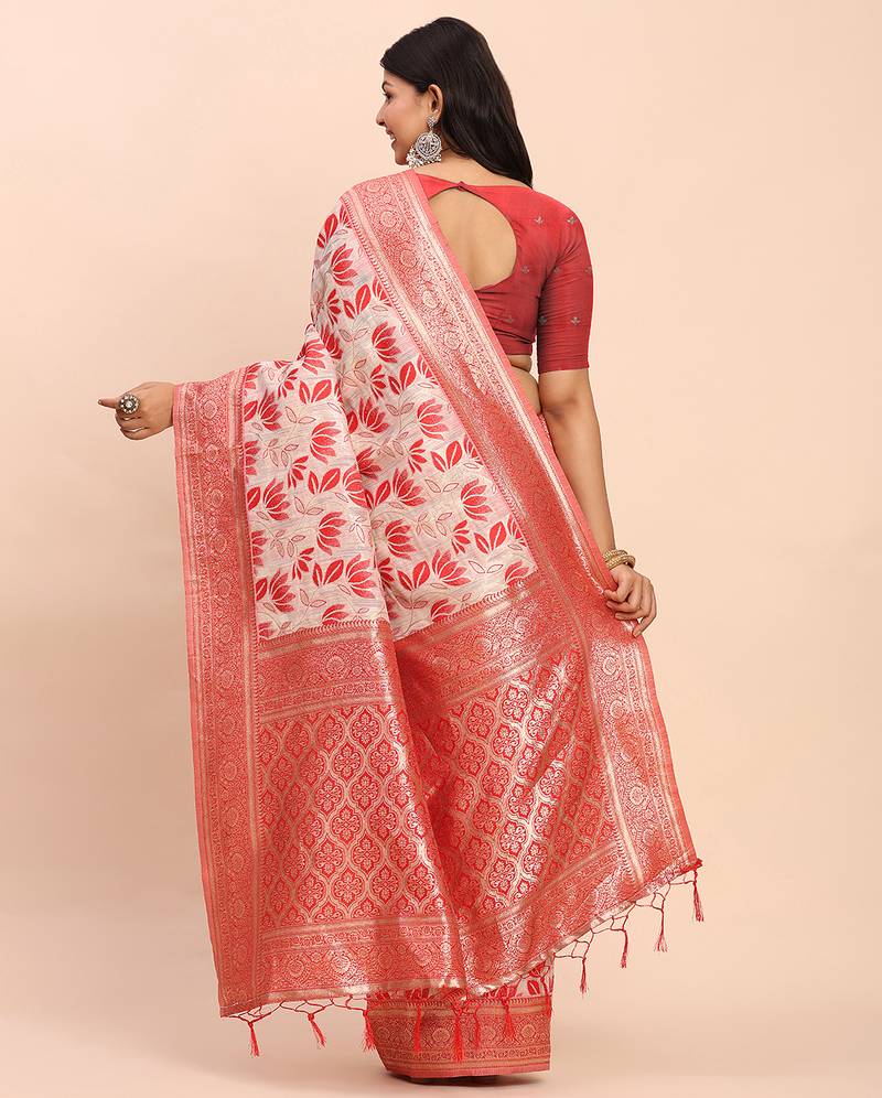 | Product Name | Red Color Woven Work Linen Cotton Saree | |