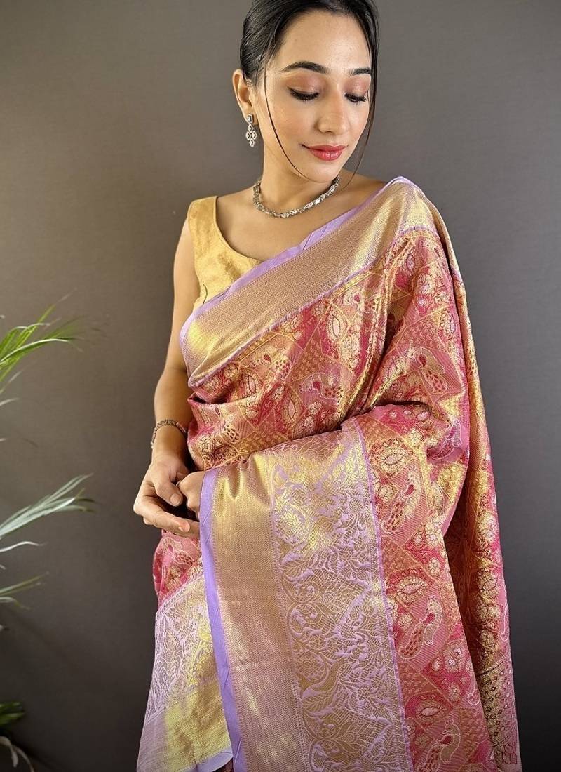 | Product Description | Pradeep Fashion Trending Celebrity Inspired Kanjivaram Tissue Silk Saree With Full Body Zari Design & Jacquard Woven Pallu Saree With Brocade Zari Blouse |