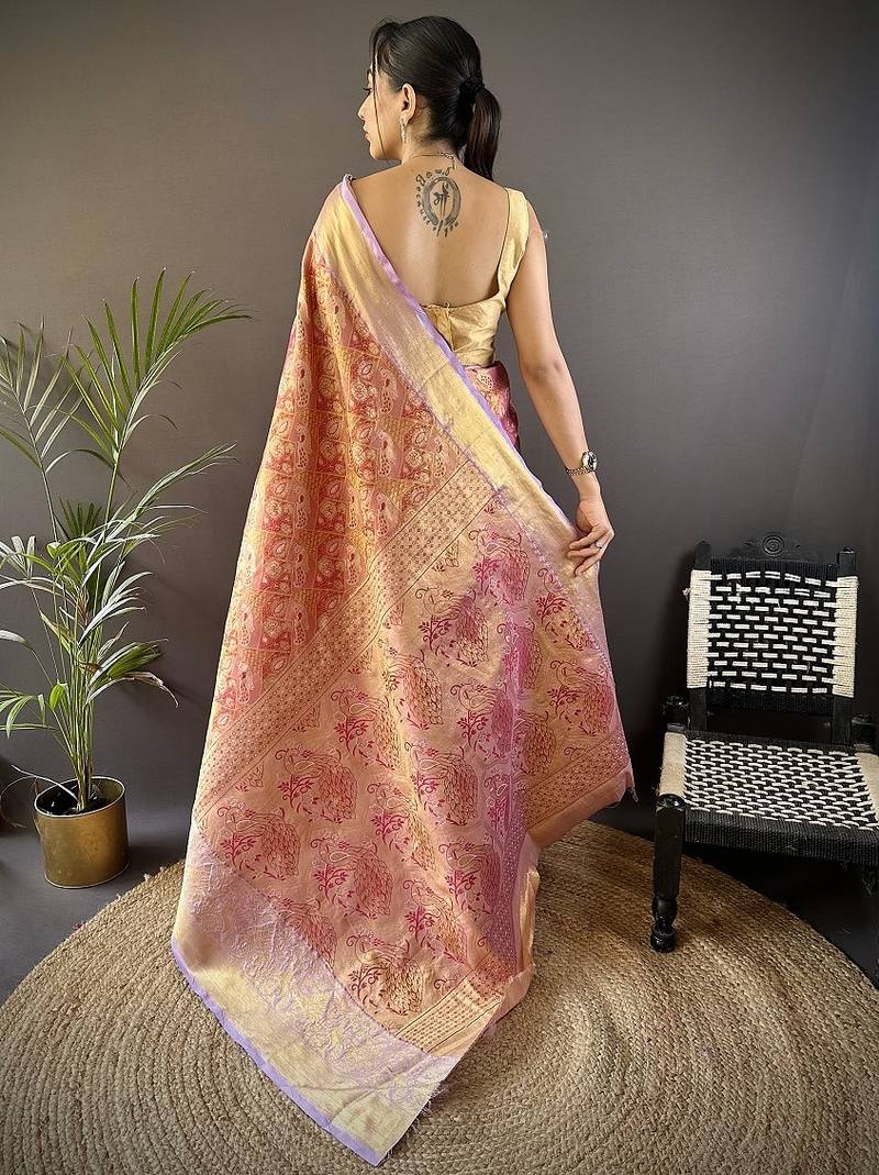 Red & multicolor color zari weaving work kanjivaram tissue silk saree