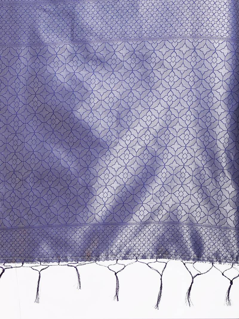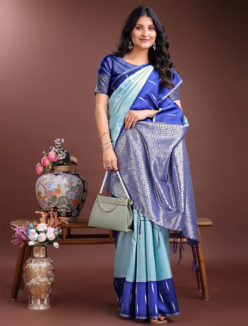 Blue color lichi art silk blend zari weaving saree with blouse