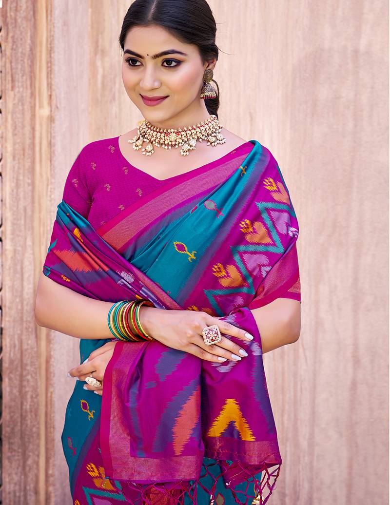 | Product Description | Pochampally Silk Blend Zari Woven Weaving Work Women's Beautiful Party Wear Wedding Look Stylish Saree With Un Stitched Blouse Pieces |