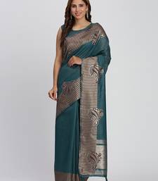 Sea green color zari woven banarasi art silk saree