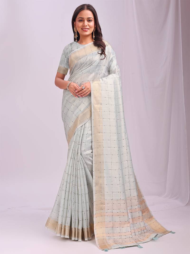 | Product Name | Sky Blue Color Cheks Zari Border Orgenza Saree With Blouse | |