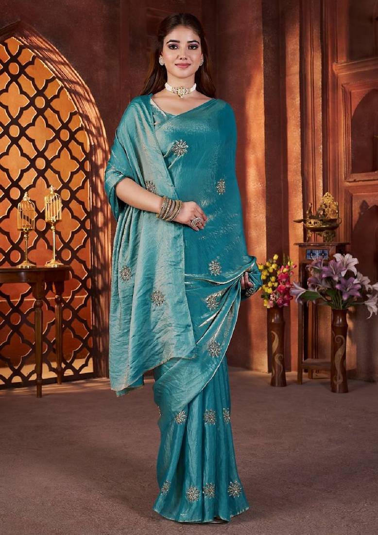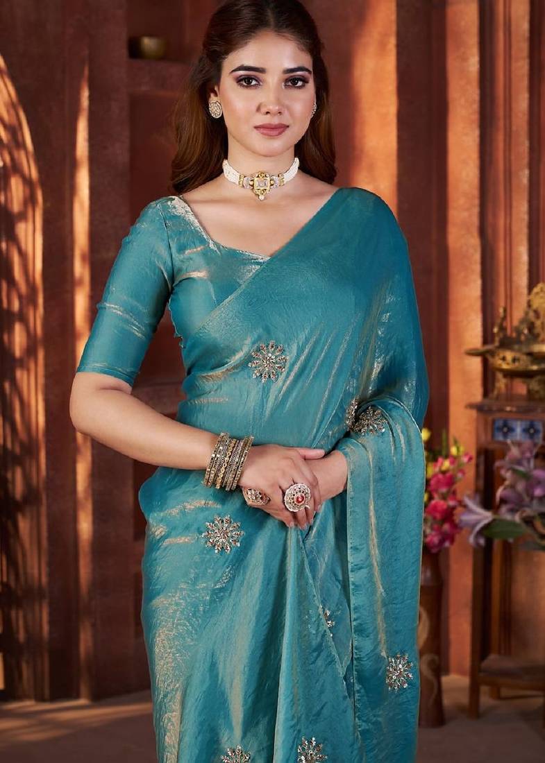 | Product Name | Sky Blue Color Fendi Satin Embroidered Work Saree With Blouse | |