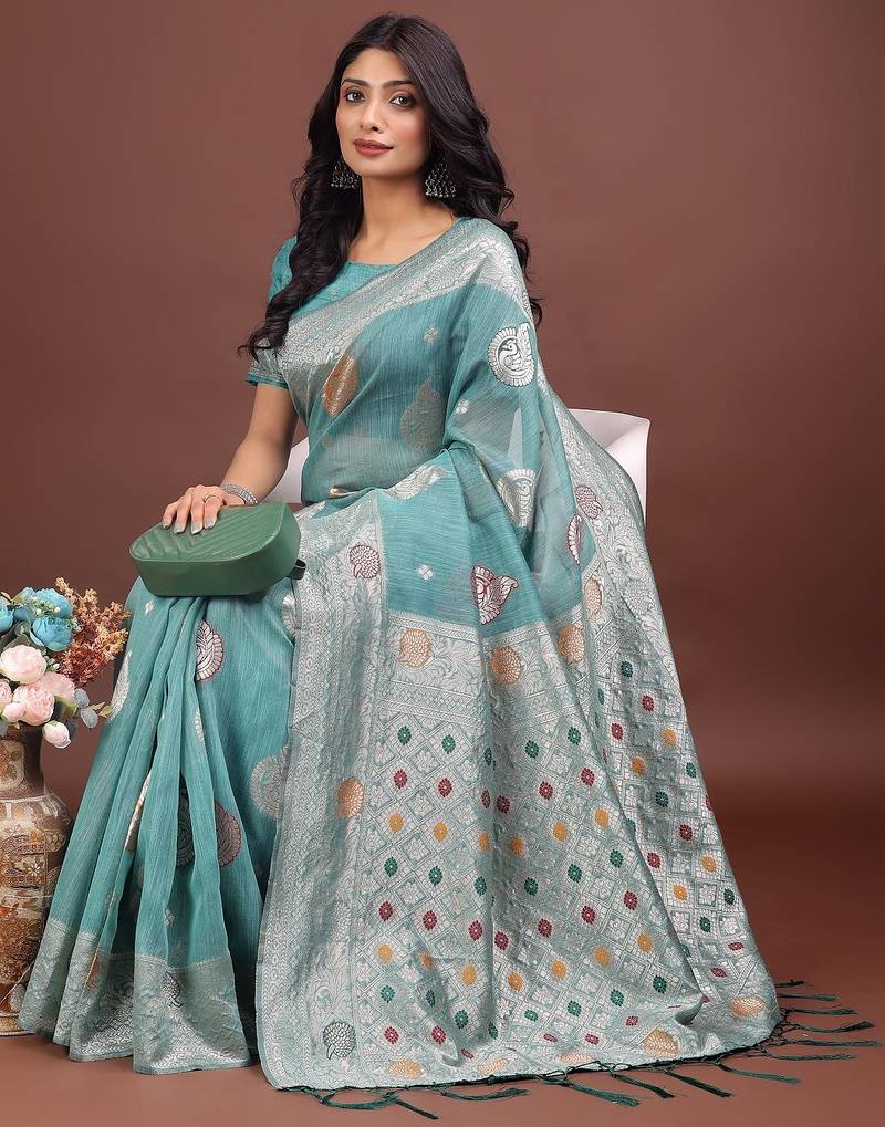 | Product Name | Sky Blue Color Linen Cotton Zari Weaving Saree With Blouse | |