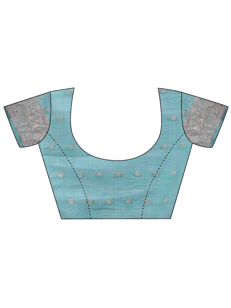 Sky blue color linen cotton zari weaving saree with blouse