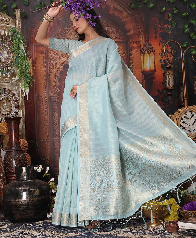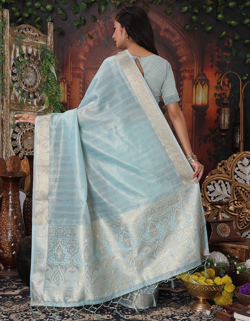 | Product Name | Sky Blue Color Orgenza Zari Woven Saree With Blouse | |