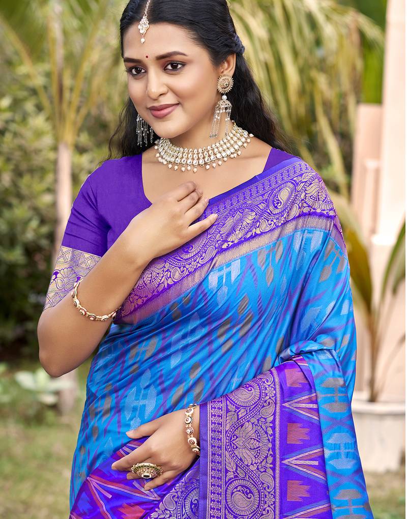 | Product Name | Sky Blue Color Pochampally Silk Blend Weaving Work Saree | |