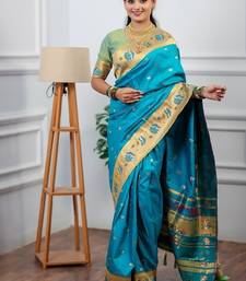 Sky blue color weaving paithani gold copper zari weaving meenakari border saree