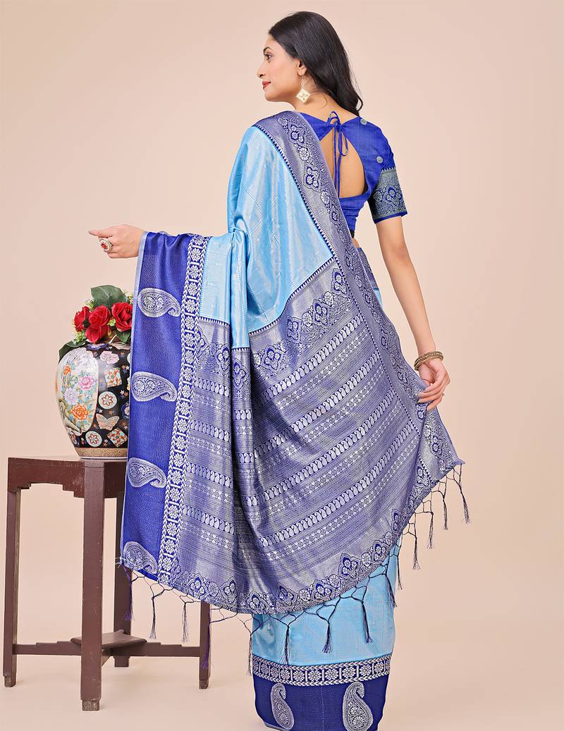 | Product Name | Sky Blue Color Woven Lichi Art Silk Blend Saree With Blouse | |