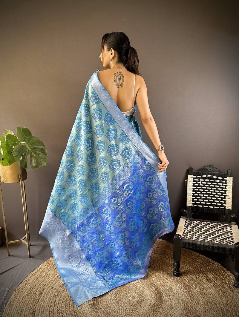Sky blue color zari weaving work kanjivaram tissue silk saree