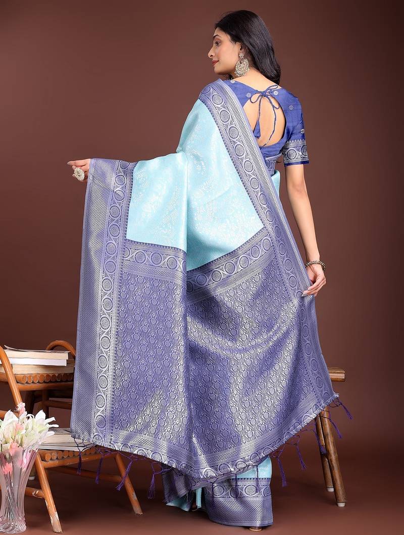 | Product Description | Litchi Silk Blend Zari Woven & Tassels Pallu Work Women's Beautiful Indian Party Wear Festival Saree With Un Stitched Blouse |