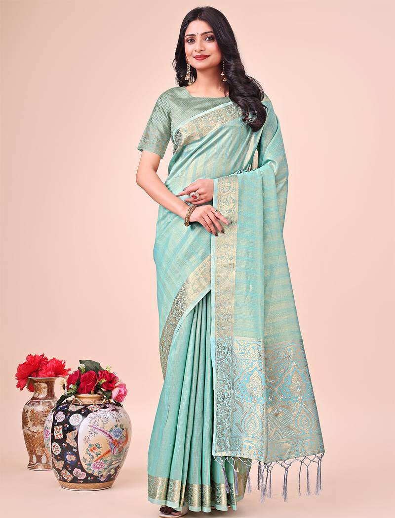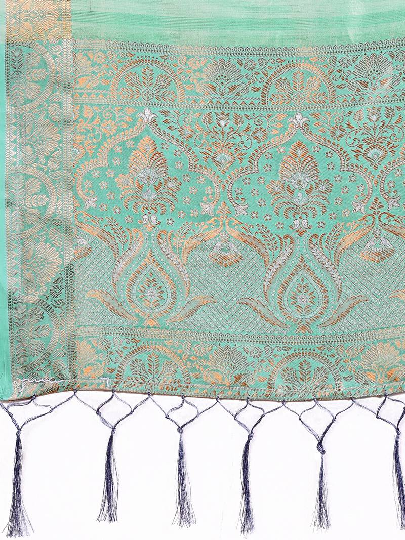 | Product Name | Teal Color Orgenza Zari Woven Saree With Blouse | |