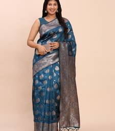 Teal color woven banarasi art silk saree with blouse
