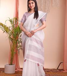 White color linen cotton zari border saree