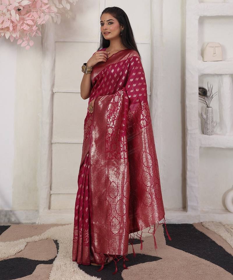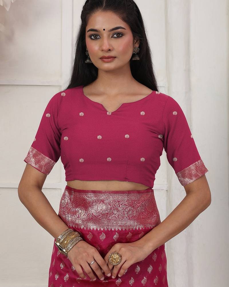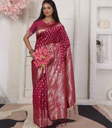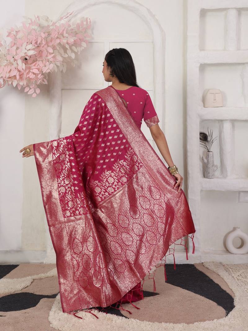 | Product Name | Pink Color Woven Work Lichi Art Silk Blend Saree | |