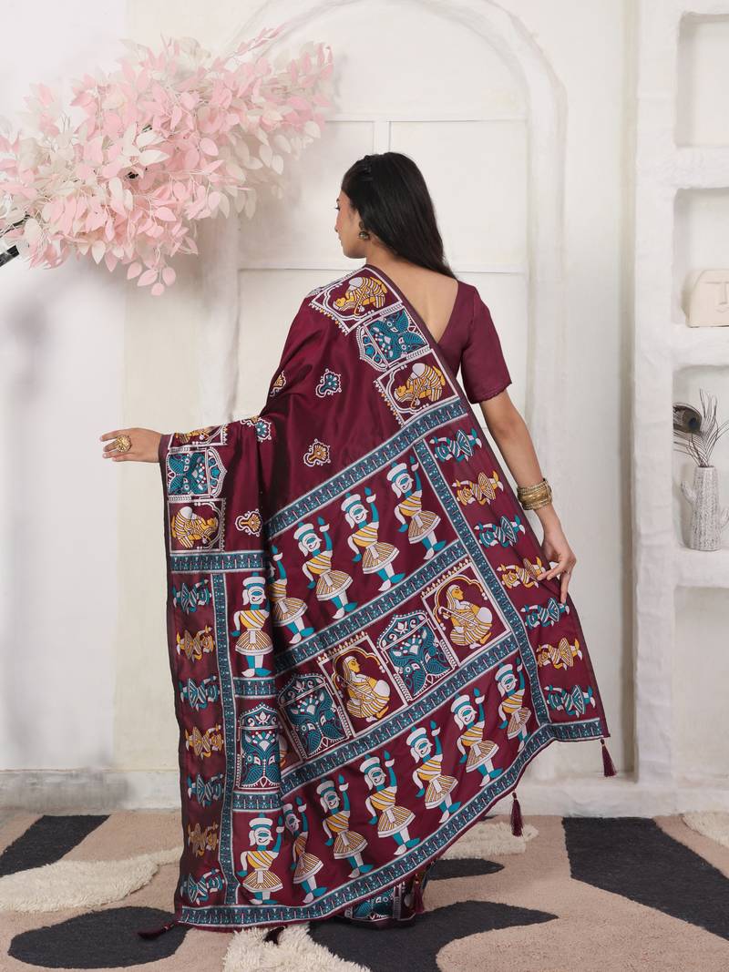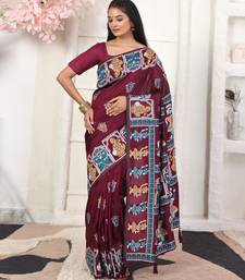 Wine color woven work art silk blend saree