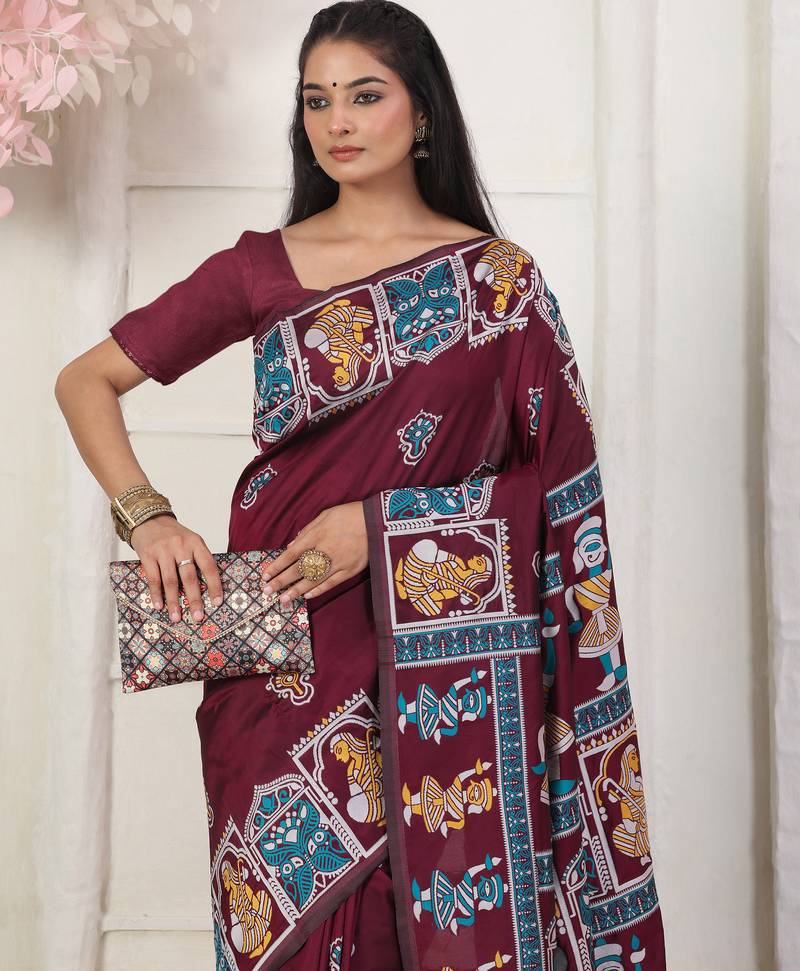 | • | Saree | : | Color- Wine / Fabric- Art Silk |