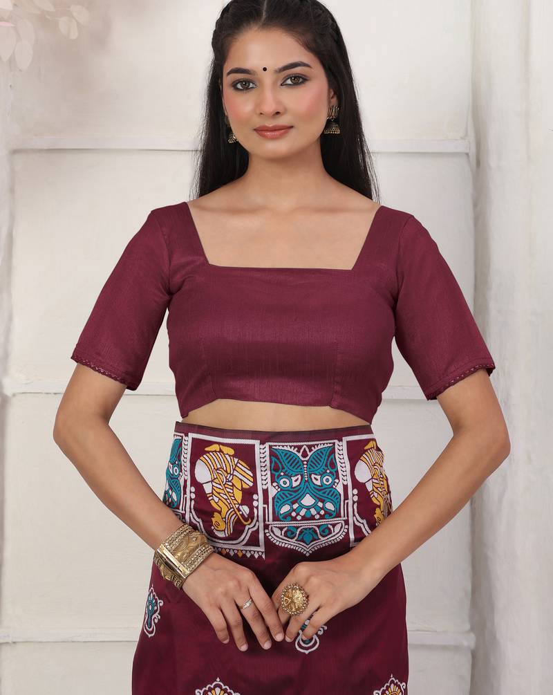 | • | Blouse | : | Color- Wine / Fabric- Art Silk |