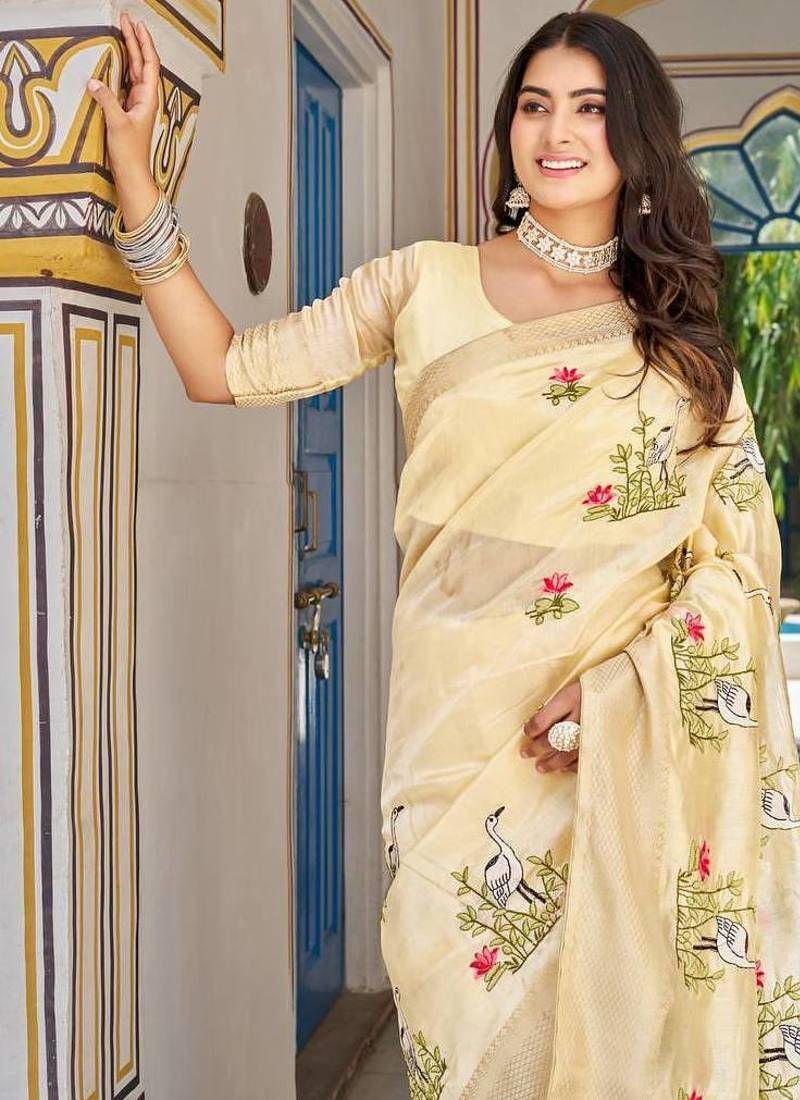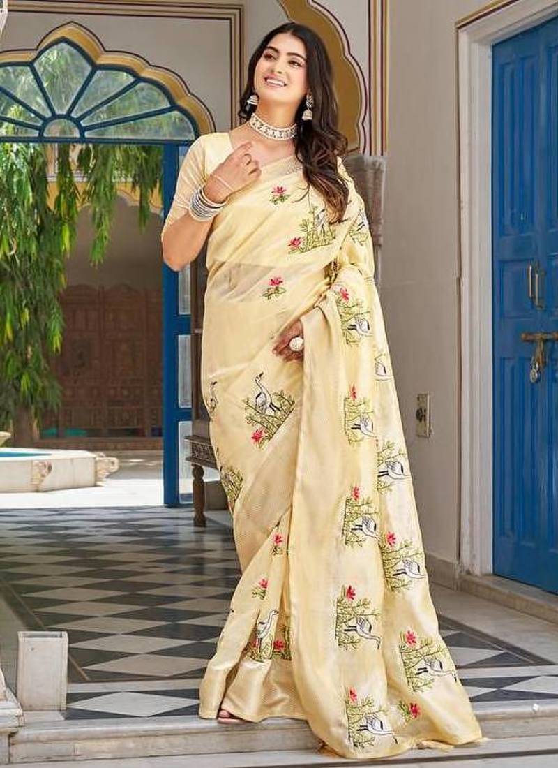 | Product Name | Yellow Color Kota Crishtal Thread Embroidered Jacquard Border Saree | |