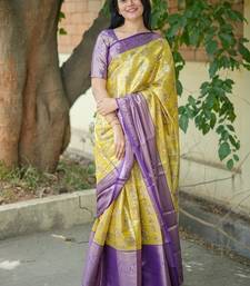 Yellow color weaving zari border kanjivaram semi art silk saree