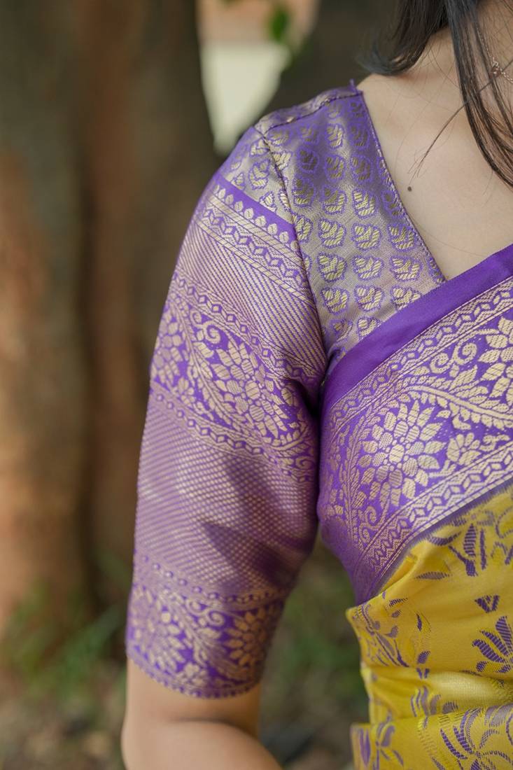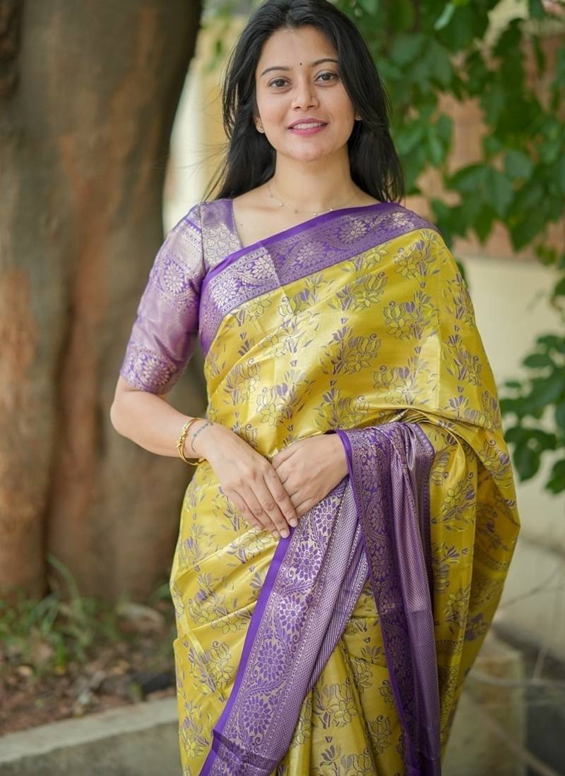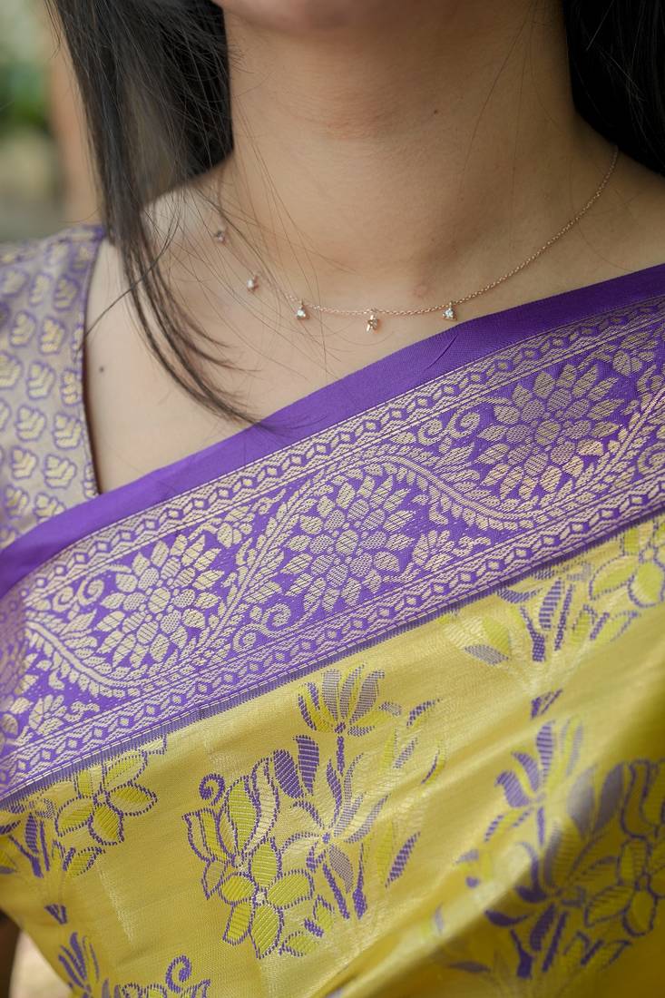 | Product Name | Yellow Color Weaving Zari Border Kanjivaram Semi Art Silk Saree | |
