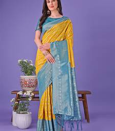 Yellow color woven lichi art silk blend saree