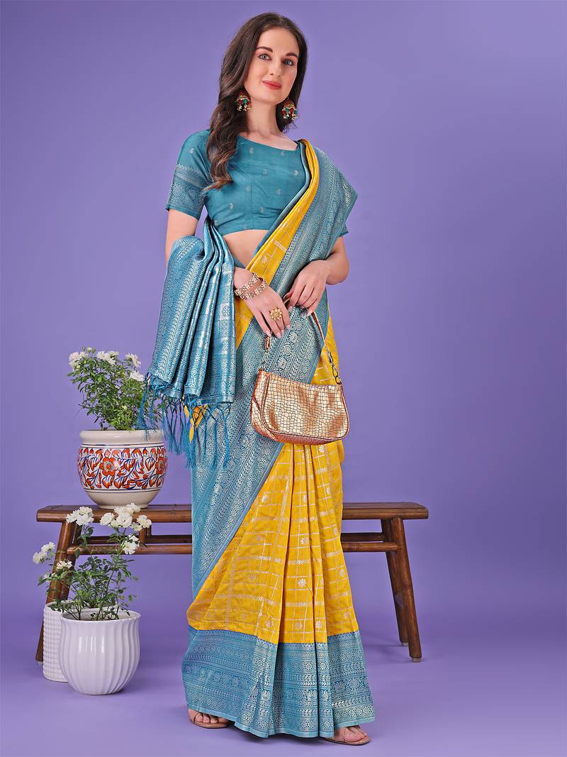 | Product Name | Yellow Color Woven Lichi Art Silk Blend Saree | |