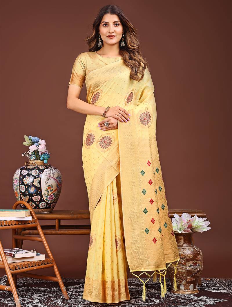 | Product Name | Yellow Color Woven Linen Cotton Saree | |